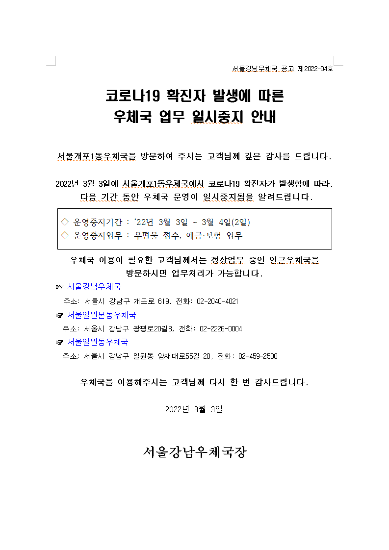 공지사항 상세정보 표로 제목, 담당자, 담당부서, 전화번호, 내용, 파일, 작성일, 지역 정보를 나타냅니다.