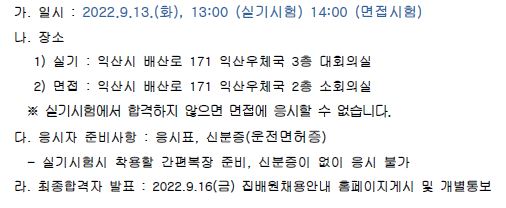 | 제목 | 2022년도 제1회 익산우체국 상시계약집배원 서류전형합격자 및 실기,면접시험 시행계획 공고 |