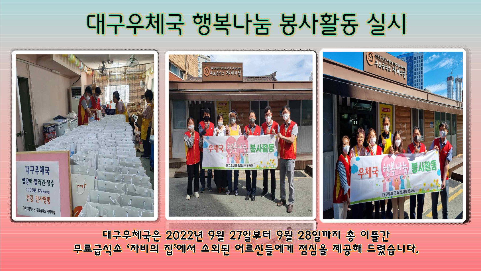 대구우체국 행복나눔 봉사활동 실시 (무료급식소 자비의 집)