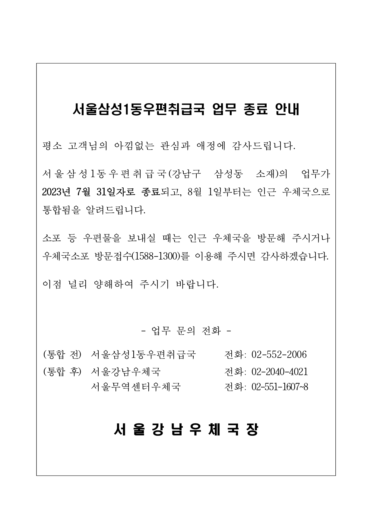 서울삼성1동우편취급국 업무종료 안내문.pdf