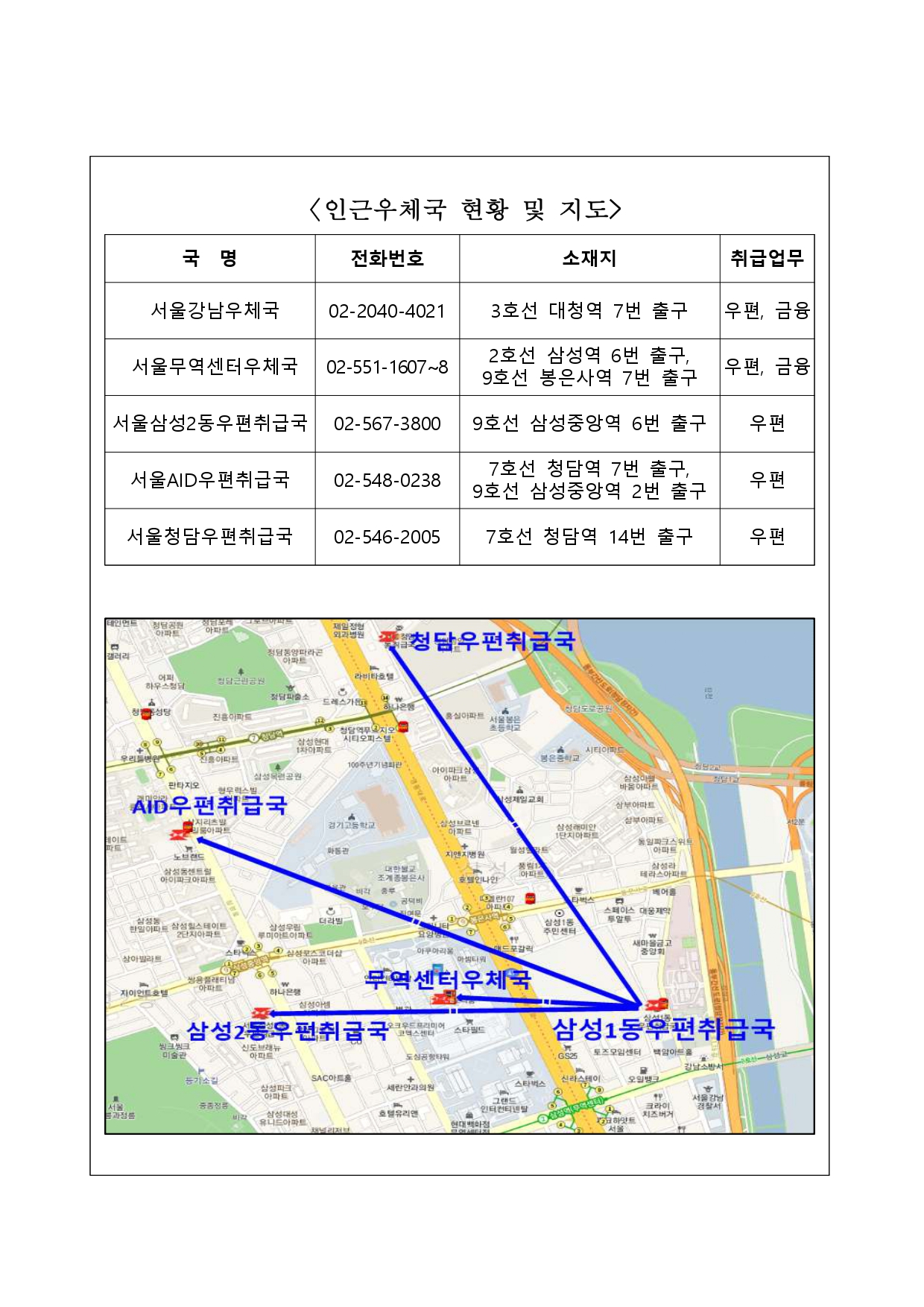 서울삼성1동우편취급국 업무종료(폐국) 안내