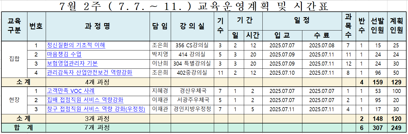 7월 2주 ( 7. 7. ~ 11. ) 교육운영계획 및 시간표