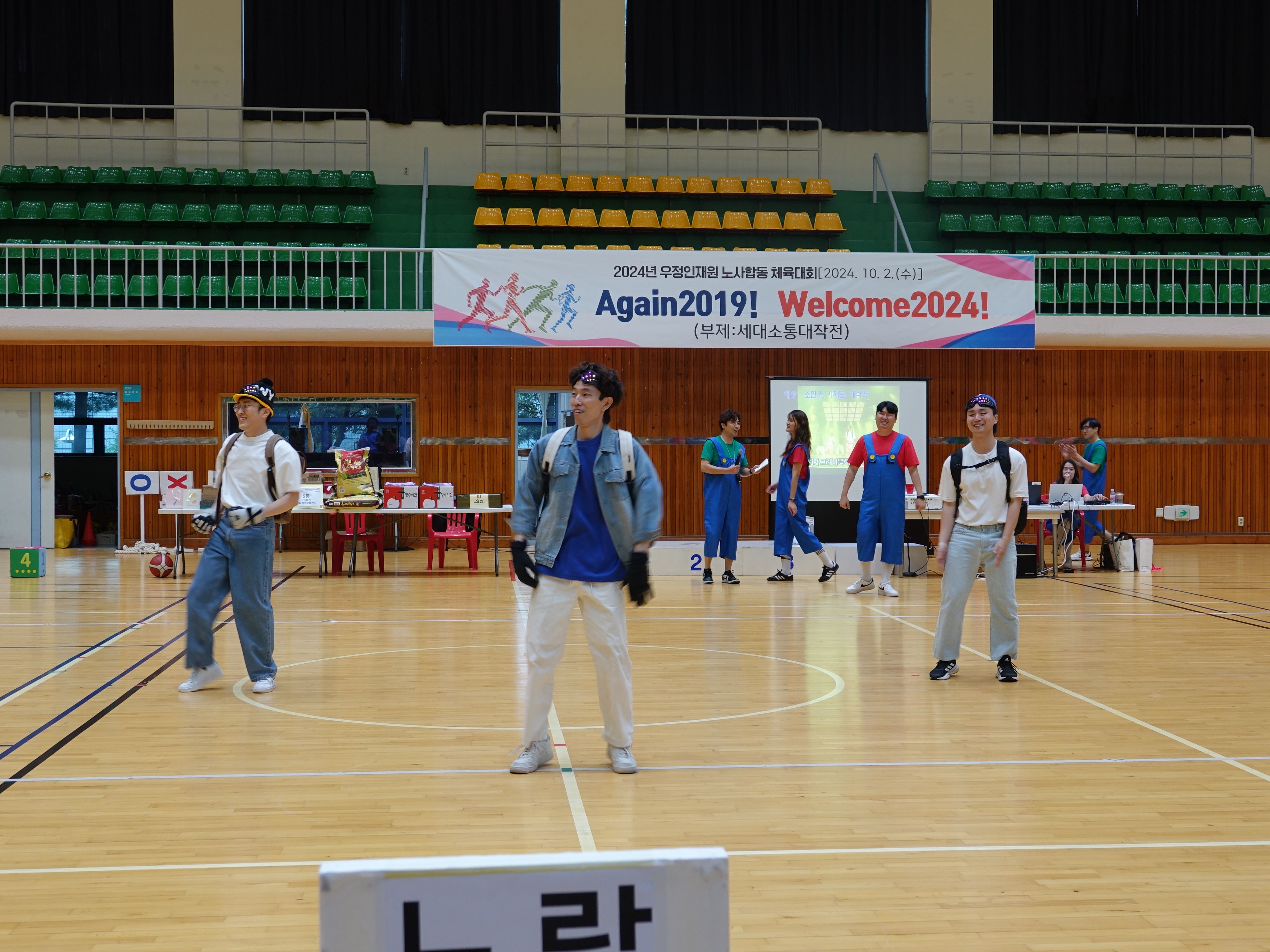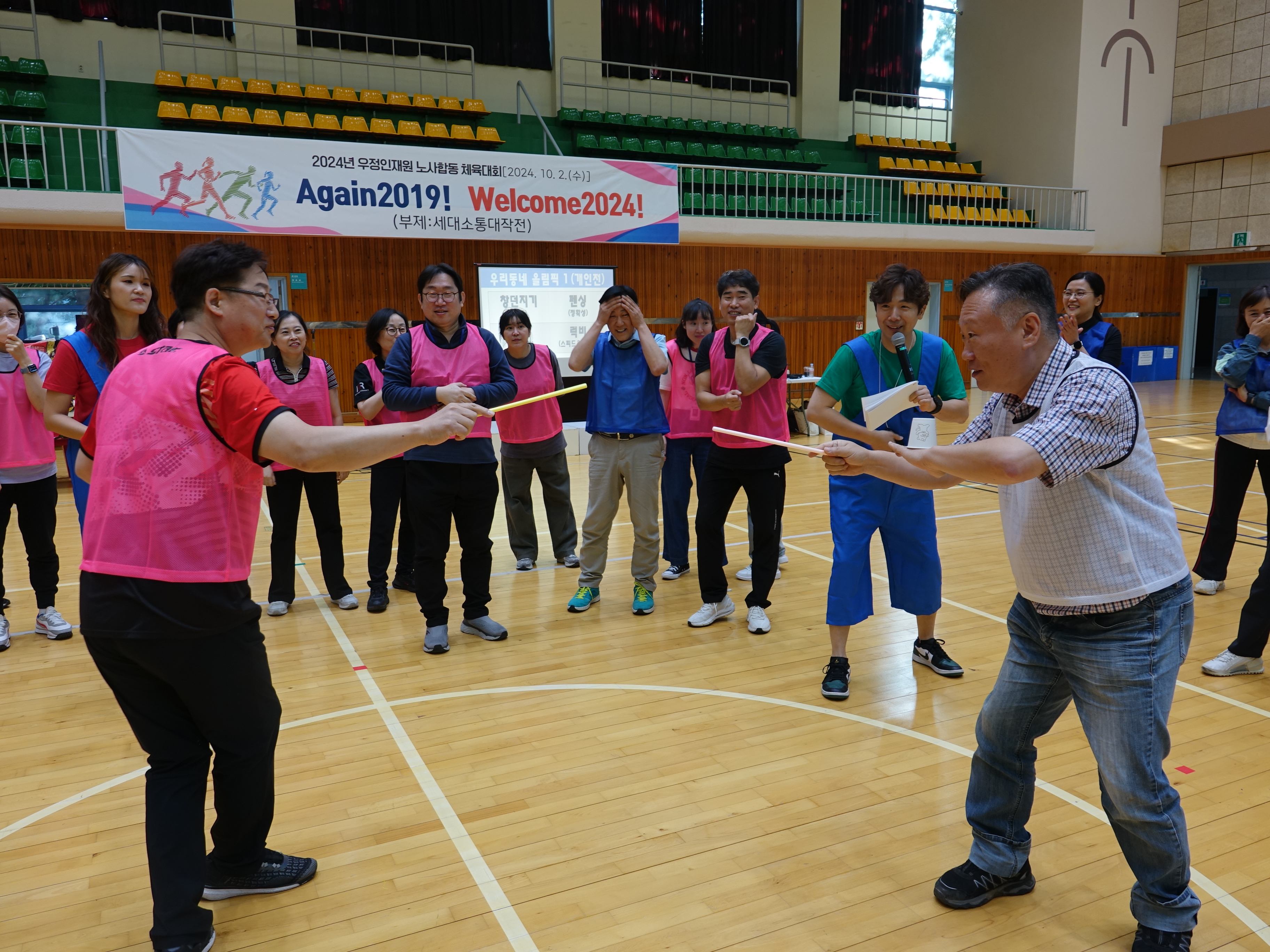 2024. 10. 2.(수) 세대·부서 간 소통강화로 긍정적이고 건강한 조직문화 조성을 위해 우정인재원 노사합동 체육대회를 개최하였습니다. 2019년 이후 코로나19로 인해 미뤄두었던 체육대회를 2024년 다시 개최하여 다채로운 프로그램을 통해 세대 간 소통하고 더욱 화합할 수 있는 좋은 시간이었습니다^0^