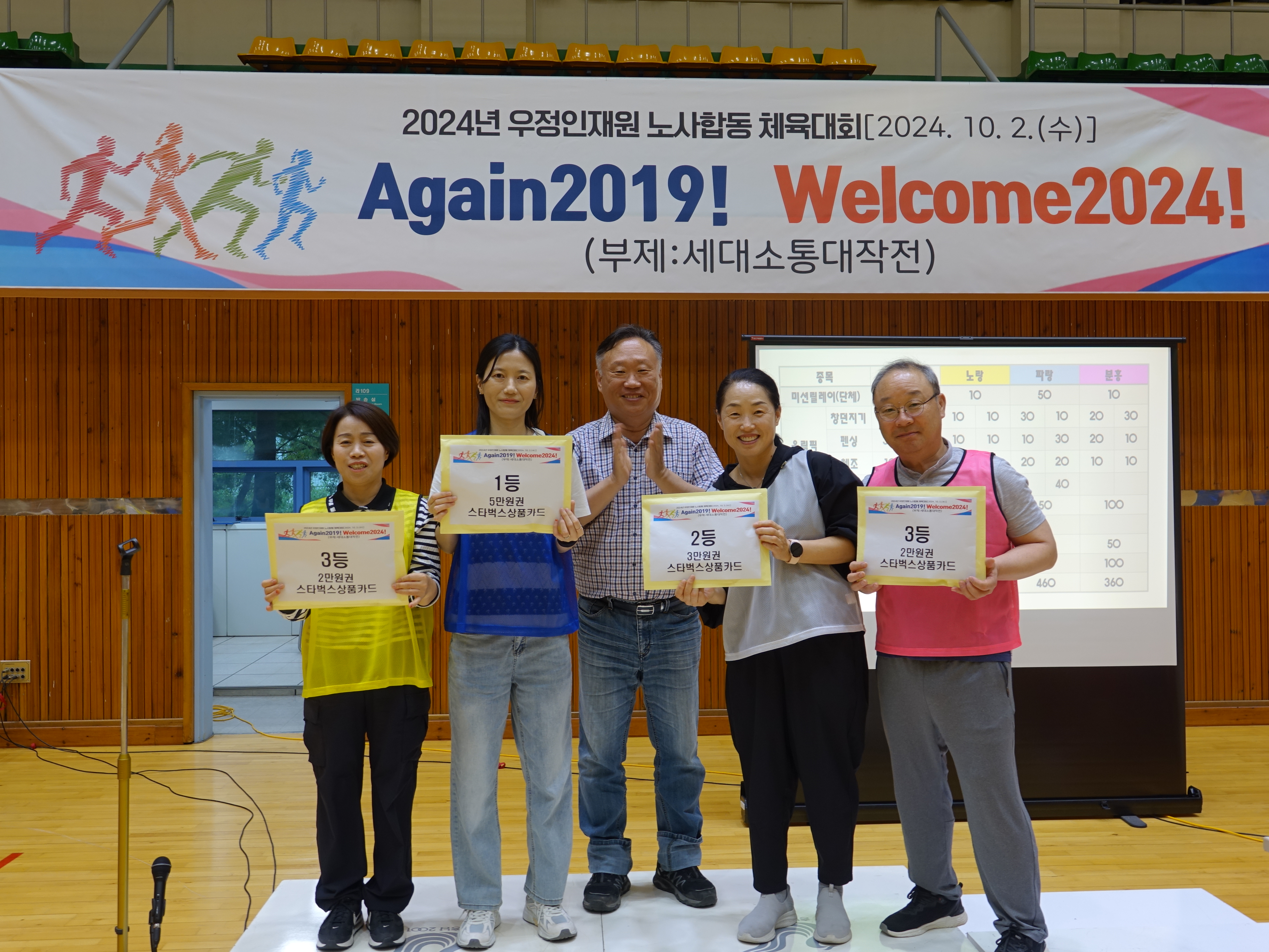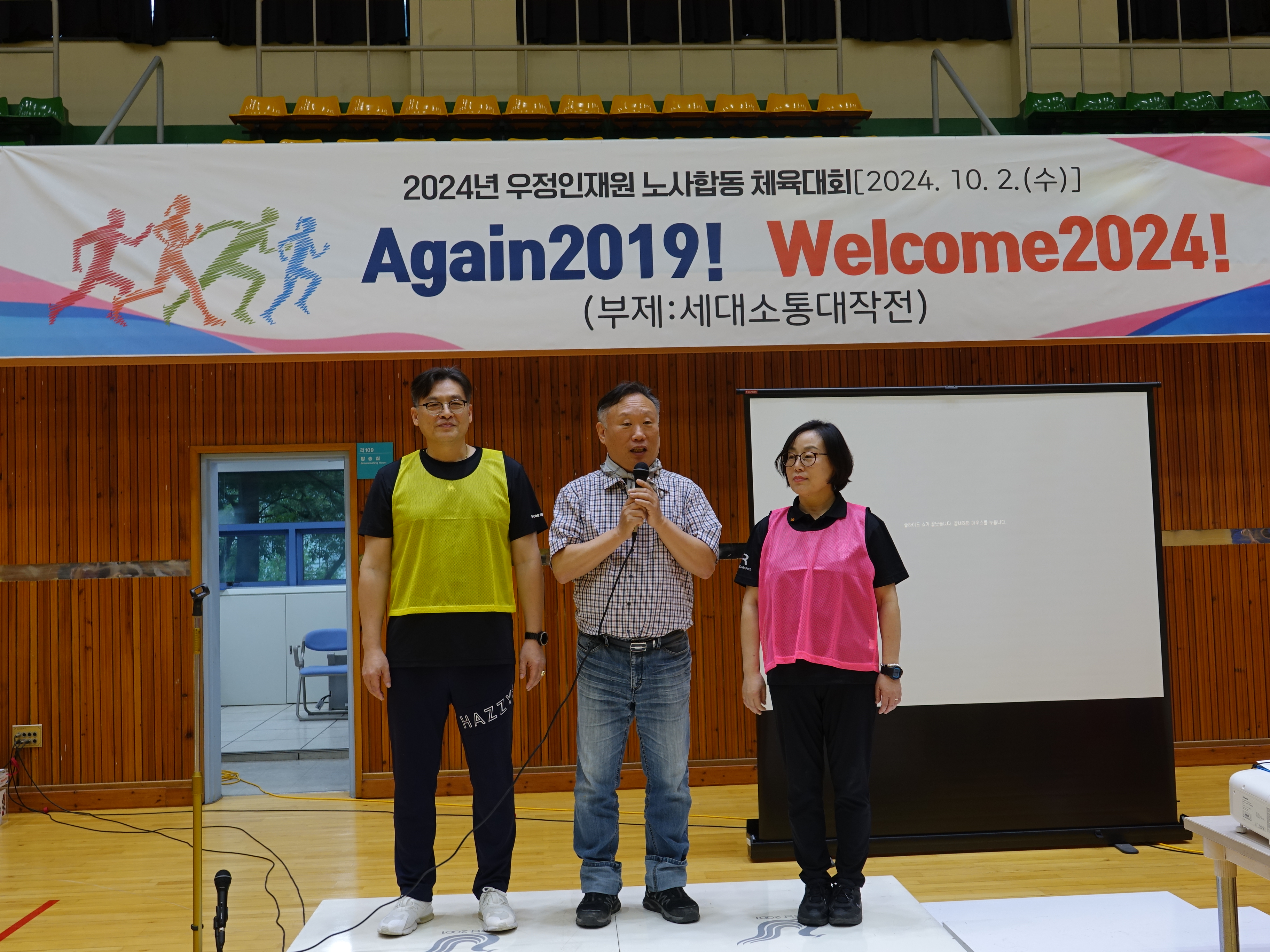 | 제목 | Again2019! Welcome2024!(세대소통대작전) 우정인재원 노사합동 체육대회(10.2.) |